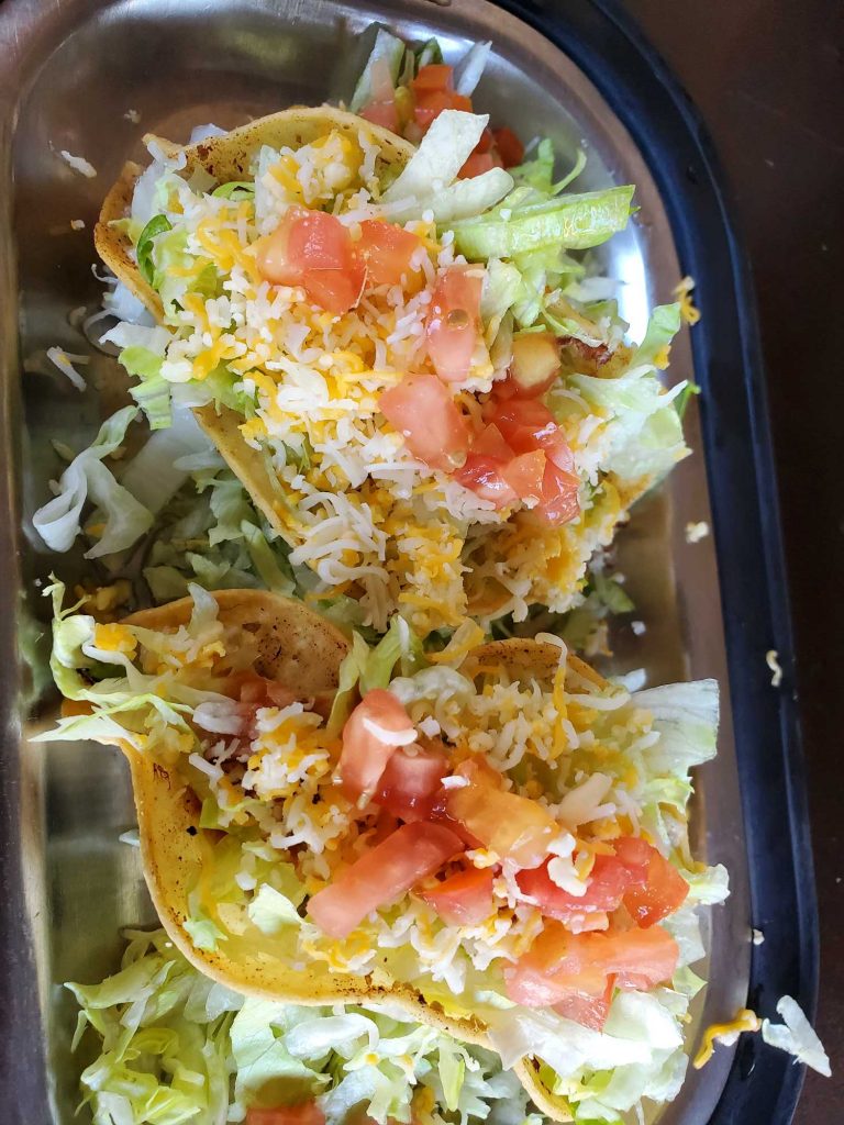 Small flour tortilla shell filled with iceberg lettuce, whole beans, and your choice of meat (chicken, ground beef, or shredded beef)