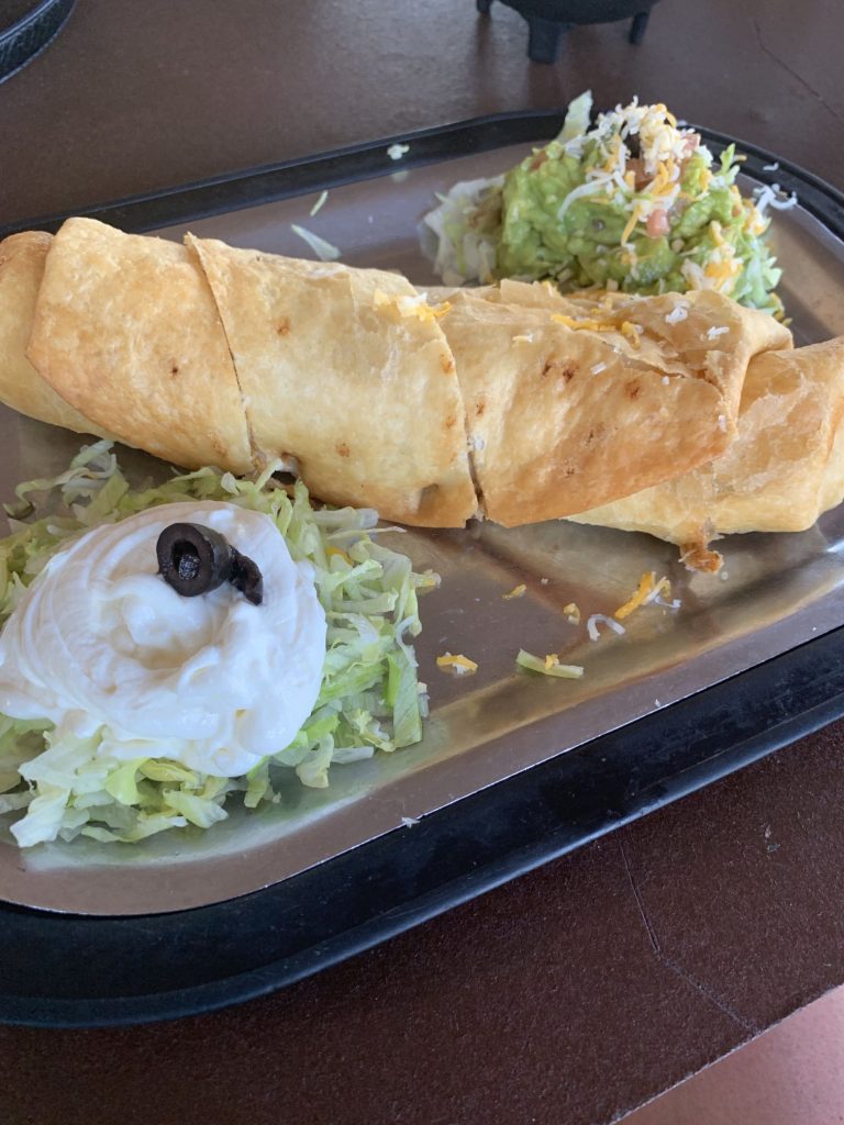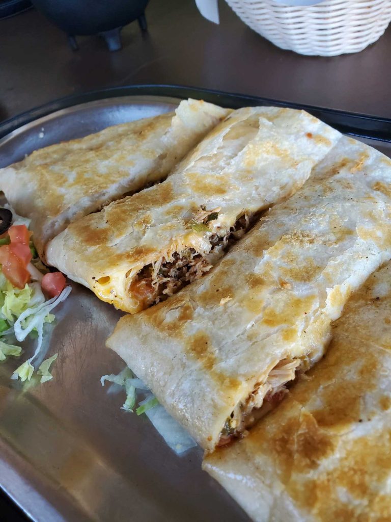 Fried, rolled flour tortillas filled with your choice of chicken, ground beef, or shredded beef. Topped with guacamole and sour cream