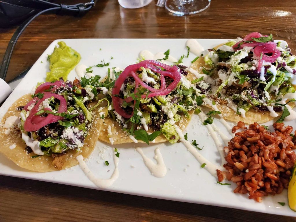 CORN TORTILLAS, FRESH AVOCADO, MOJO SLAW, PICO DE GALLO AND CHIPOTLE CREMA