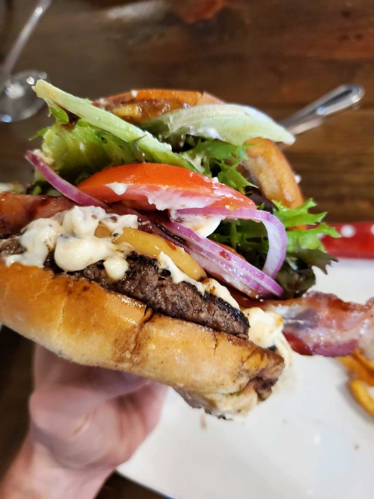 BRISKET SHORT RIB BEEF PATTY, BACON, BLUE CHEESE AND RED WINE AIOLI