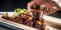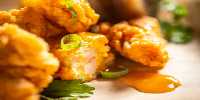 5 crispy pork "wings" dressed in Korean Fire sauce served with cucumber-cabbage slaw