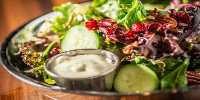 Mixed greens, cucumber, red onion, pecans and craisins. Add grilled chicken, Italian tuna or lobster